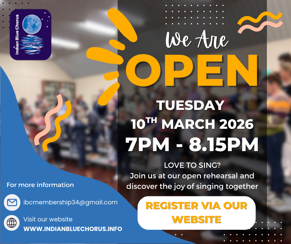 This is your chance to see what Indian Blue Chorus is all about and discover if we’re the singing group you’ve been looking for.